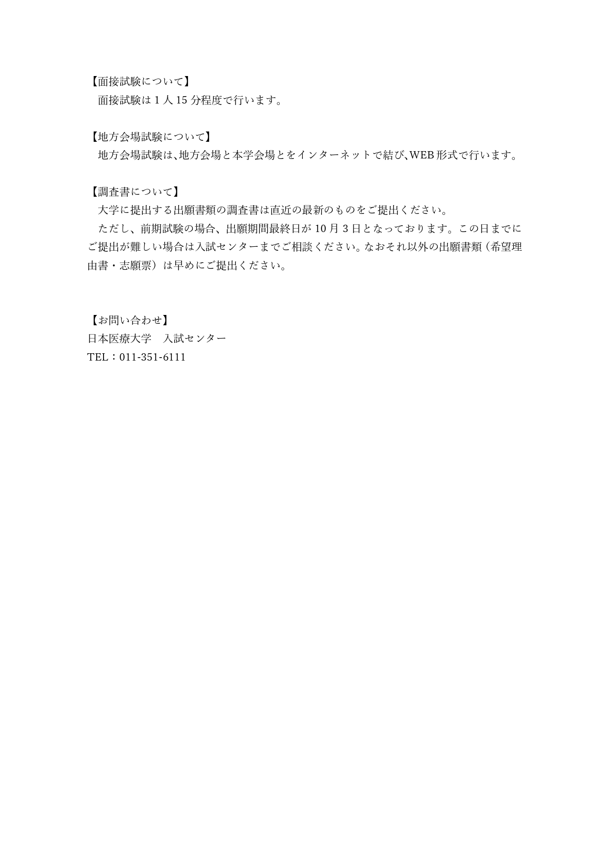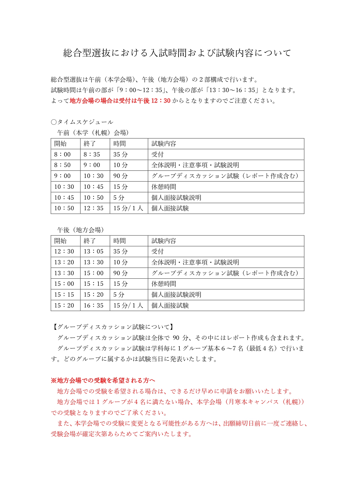 重要なお知らせ 2025.09.25 総合型選抜(前期)を受験予定の皆様へ 総合型選抜(前期)を受験予定の皆様へ 総合型選抜(前期)を受験予定の皆様へ 総合型選抜(前期)における入試時間と試験内容についてお伝えいたします。 詳細は下記画像またはPDFファイルからご覧ください。 総合型選抜(前期)における入試時間および試験内容について 総合型選抜(前期)を受験予定の皆様へ(1/2ページ) 総合型選抜(前期)を受験予定の皆様へ(2/2ページ)