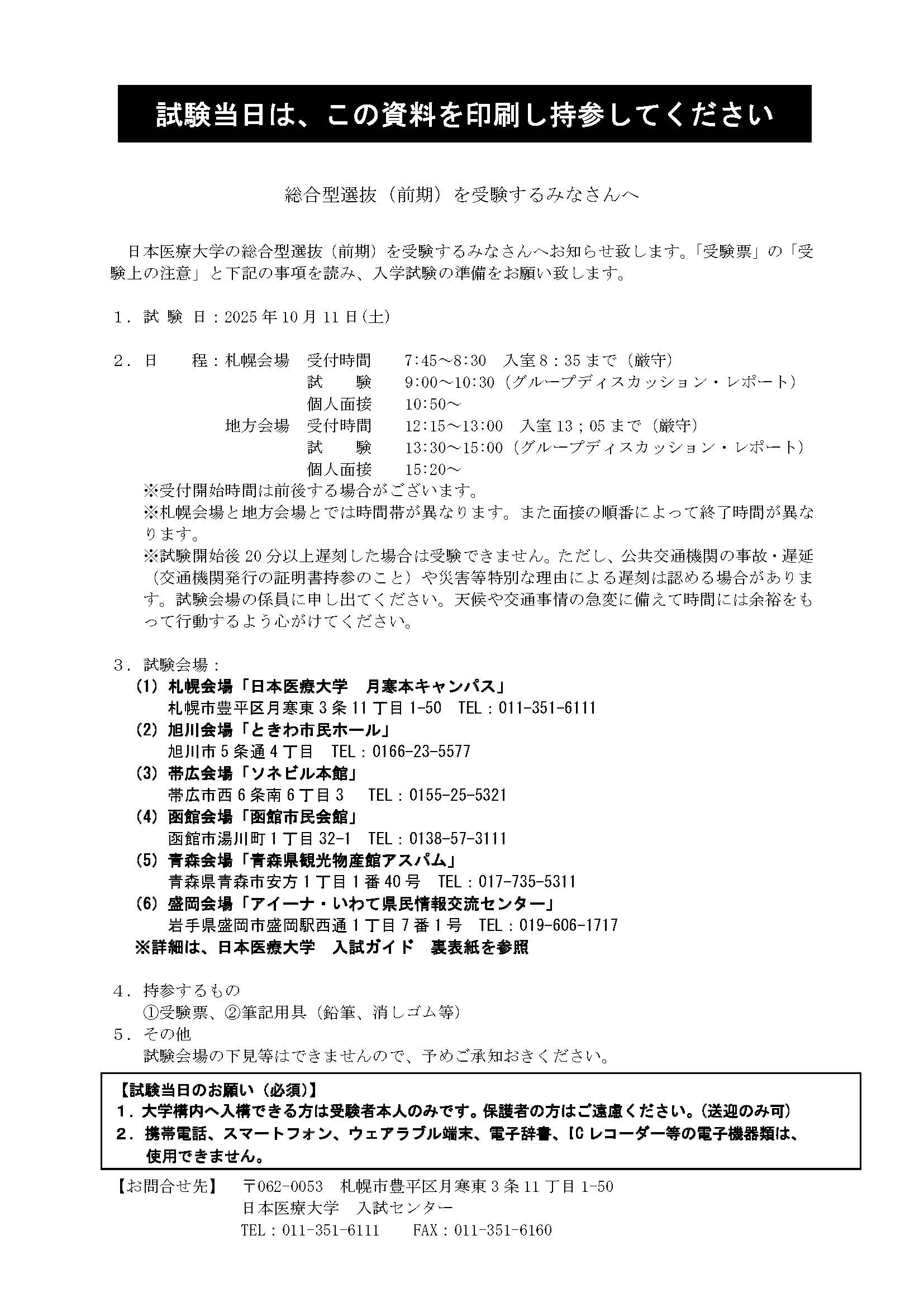 下記資料の内容をよく読み、入学試験の準備をお願いいたします。