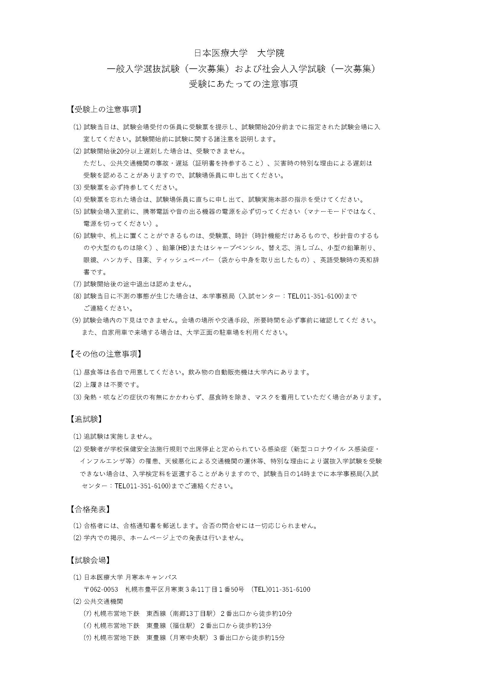 【重要】日本医療大学大学院 一般入学選抜試験(一次募集)および社会人入学試験(一次募集)を受験するみなさんへ