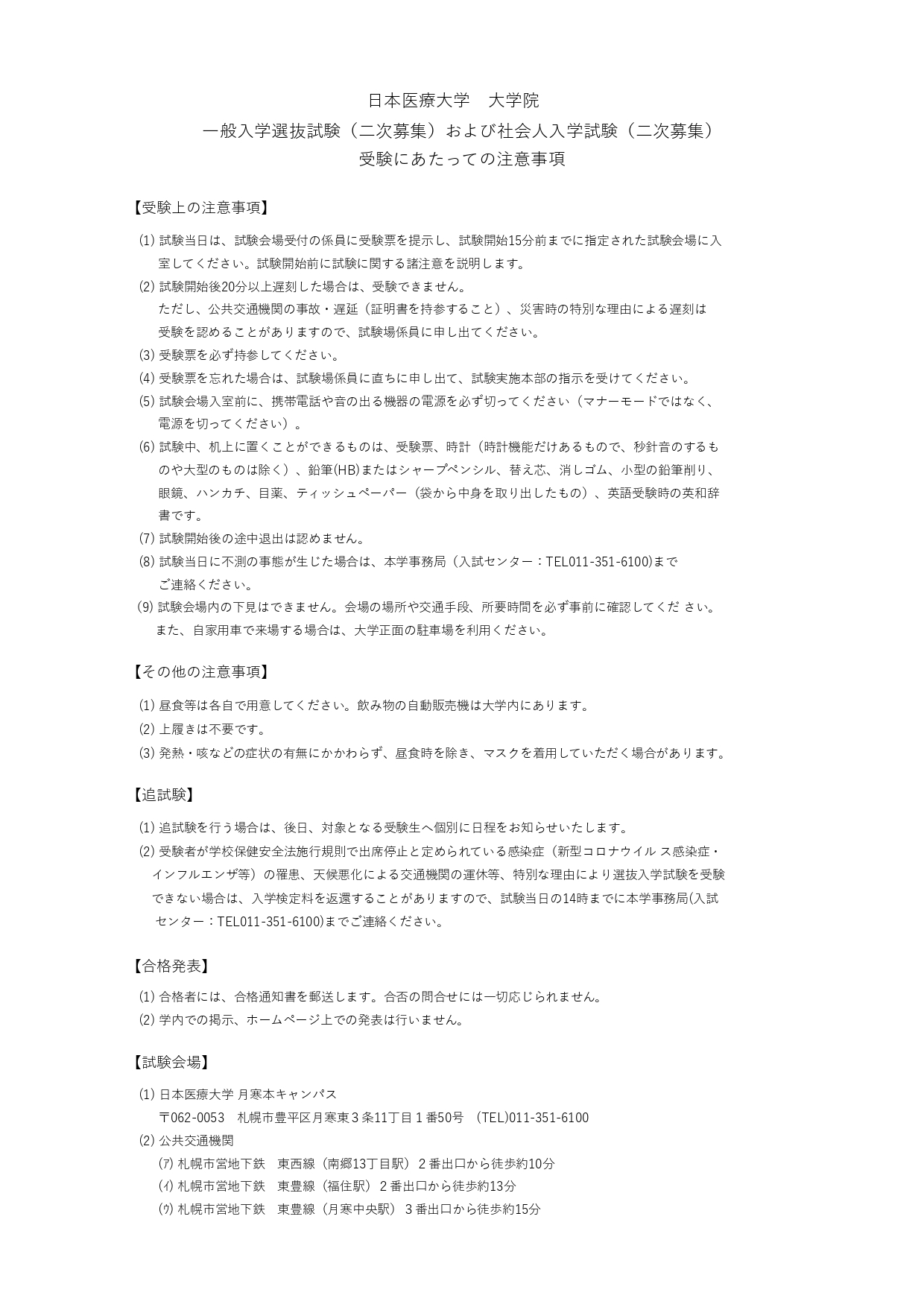 【重要】日本医療大学大学院 一般入学選抜試験(二次募集)および社会人入学試験(二次募集)を受験するみなさんへ