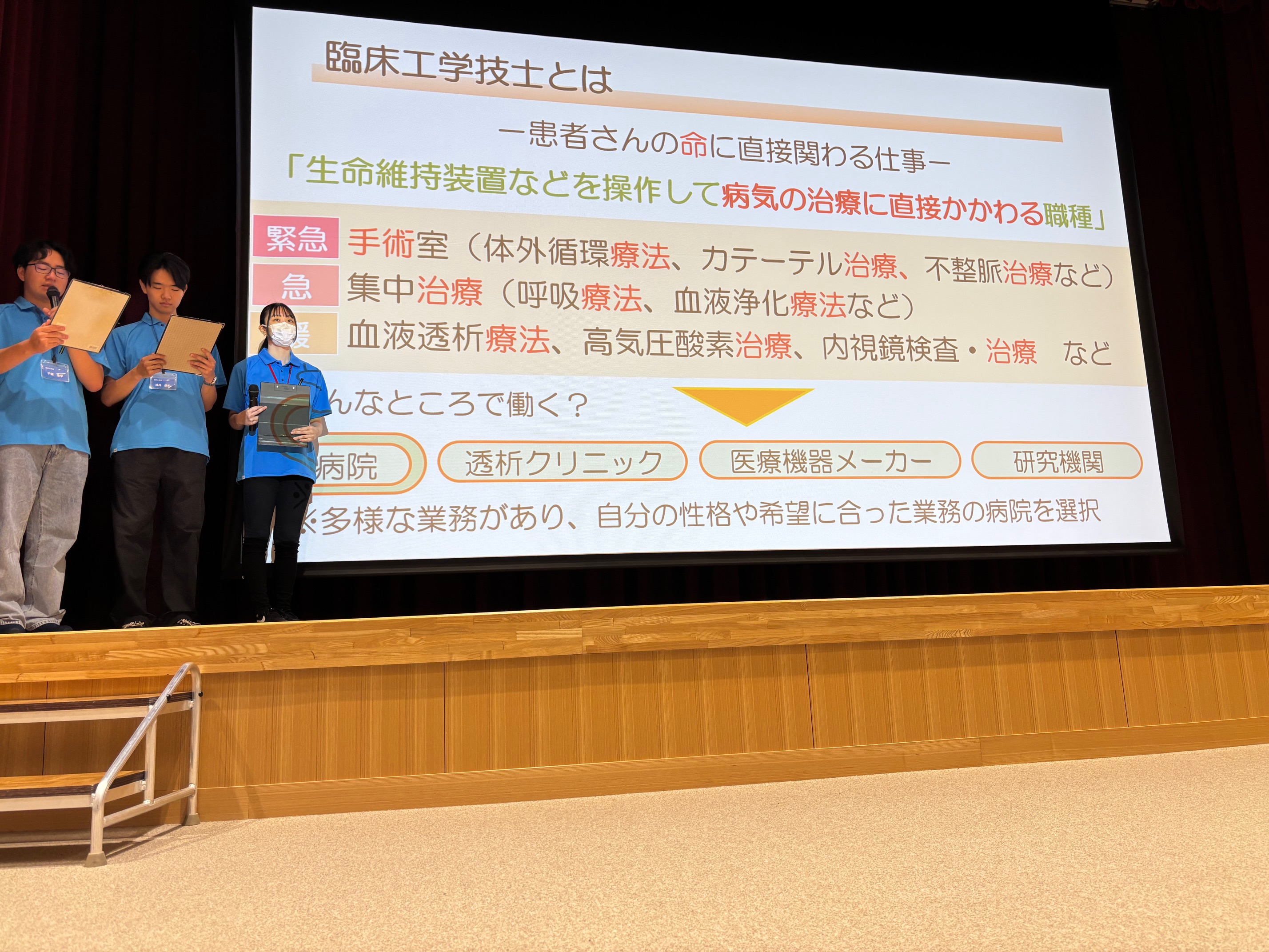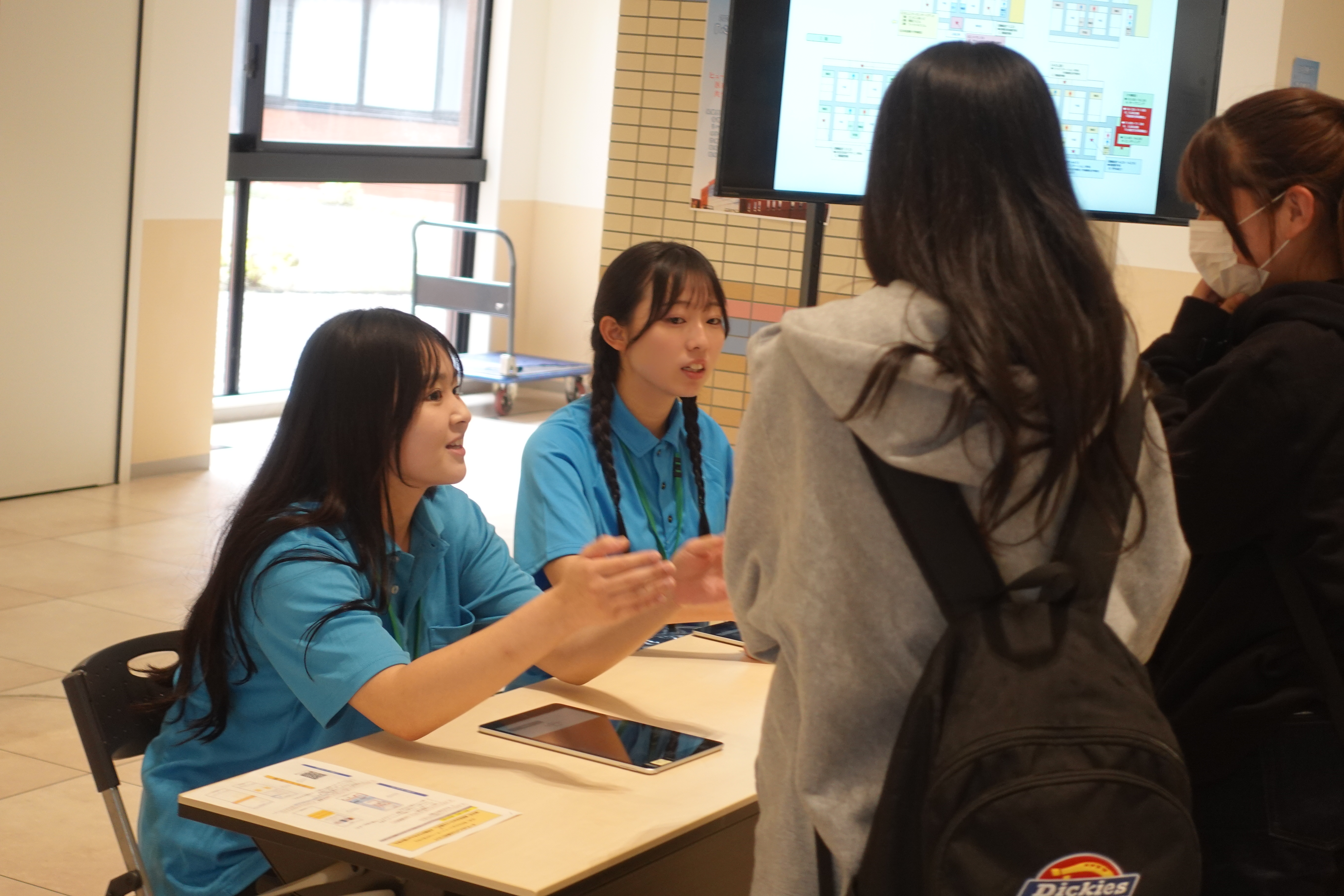今回のオープンキャンパスでは、「面接対策講座」「小論文対策講座」を実施し、受験を控えた3年生の多くがプログラムに参加していました。加えて、学科紹介、模擬授業、キャンパスツアーなどのプログラムを開催し、キャンパス内のみならず、大学敷地内に併設している日本医療大学病院での現場体験をしていただきました。学生食堂での学食体験では「メニューが豊富だった」「食堂内が広く、とてもおいしかった」などの声をいただき、盛況していました。