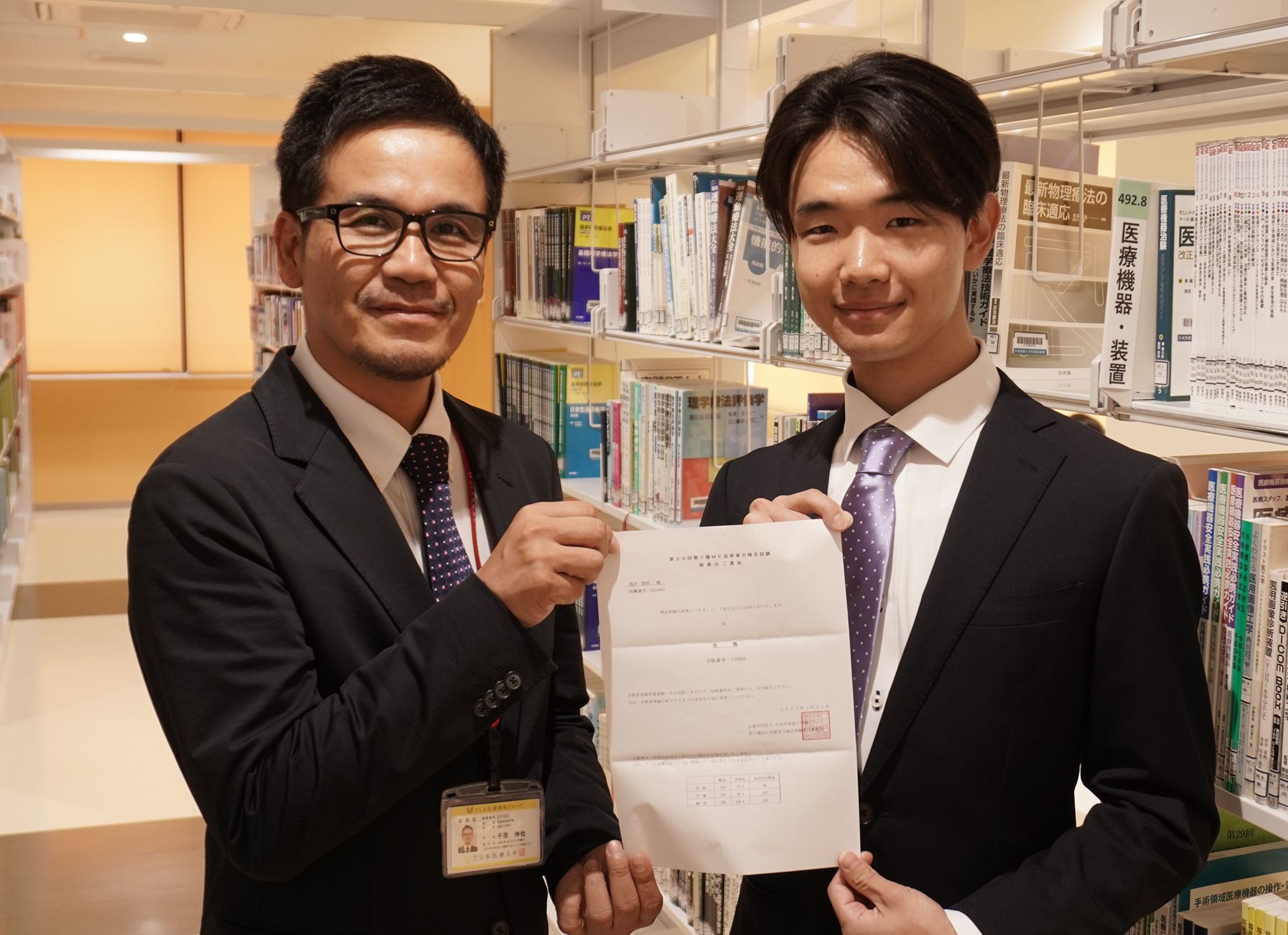 本学科では在学中の資格取得を積極的に奨励しておりますが、学生による第1種ME技術実力検定試験合格は目標のひとつであり、2期生の挑戦と快挙は後輩への模範となるものとして大変喜ばしいです。