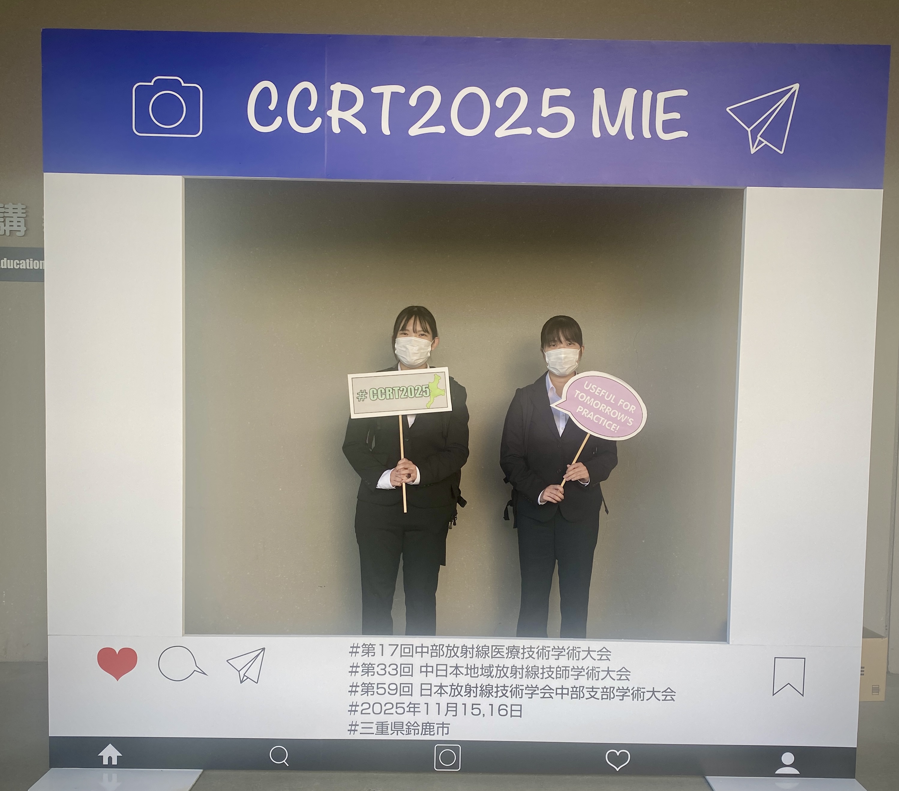 NEWS 学生活動 2025.12.08 学生研究発表のお知らせ 11月15日〜16日に鈴鹿医療科学大学(三重県鈴鹿市)で開催された第17回中部放射線医療技術学術大会にて診療放射線学科4年生の清水綾弥さんと疋田友碧さんが卒業研究の成果を一般演題として発表しました。 演題名 「超音波ストレインエラストグラフィーにおける硬度表示とストロークスピードの関係 / 発表者: 清水綾弥」 「超音波ストレイングラフィーにおける硬度表示とターゲット深度の関係 / 発表者: 疋田友碧」