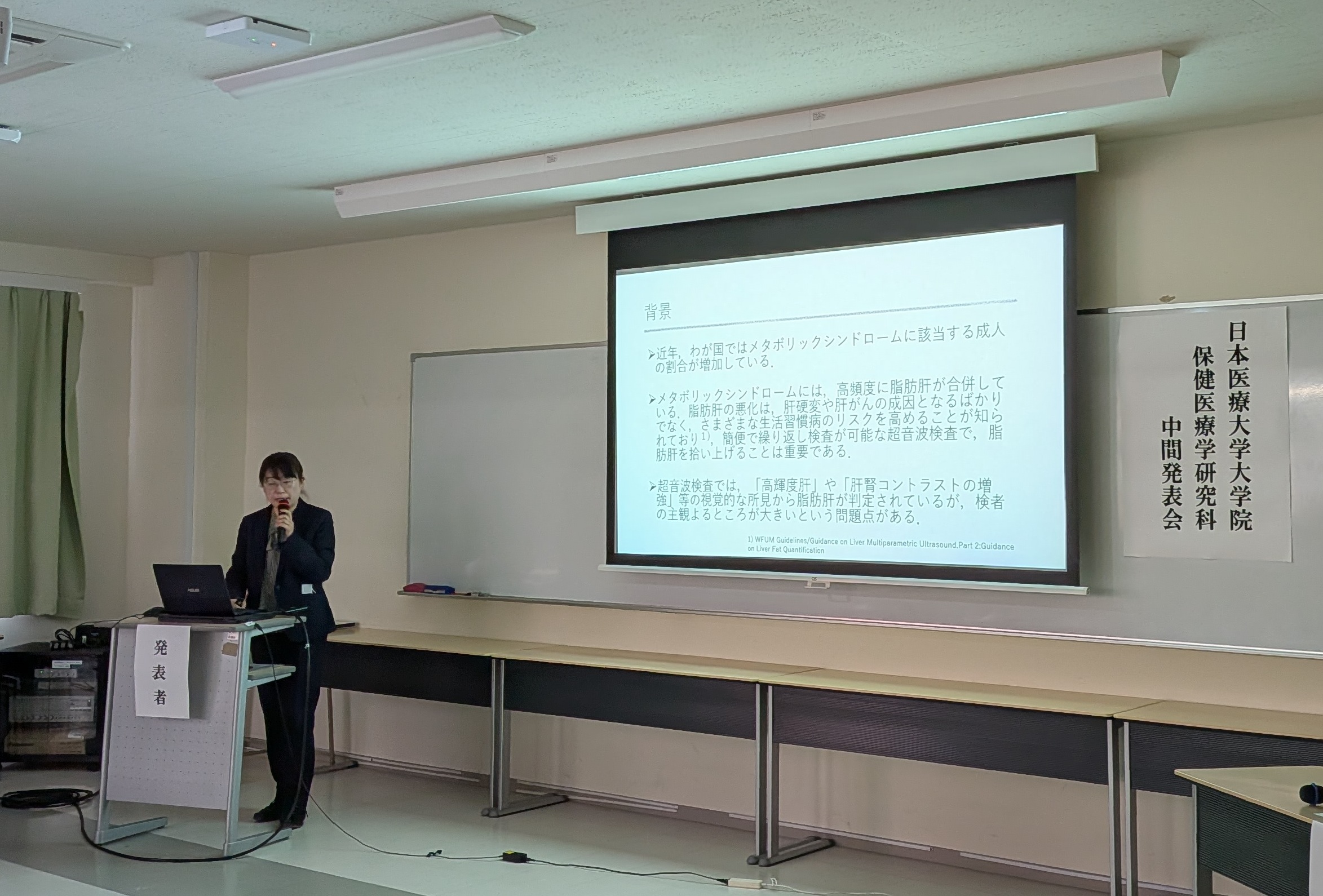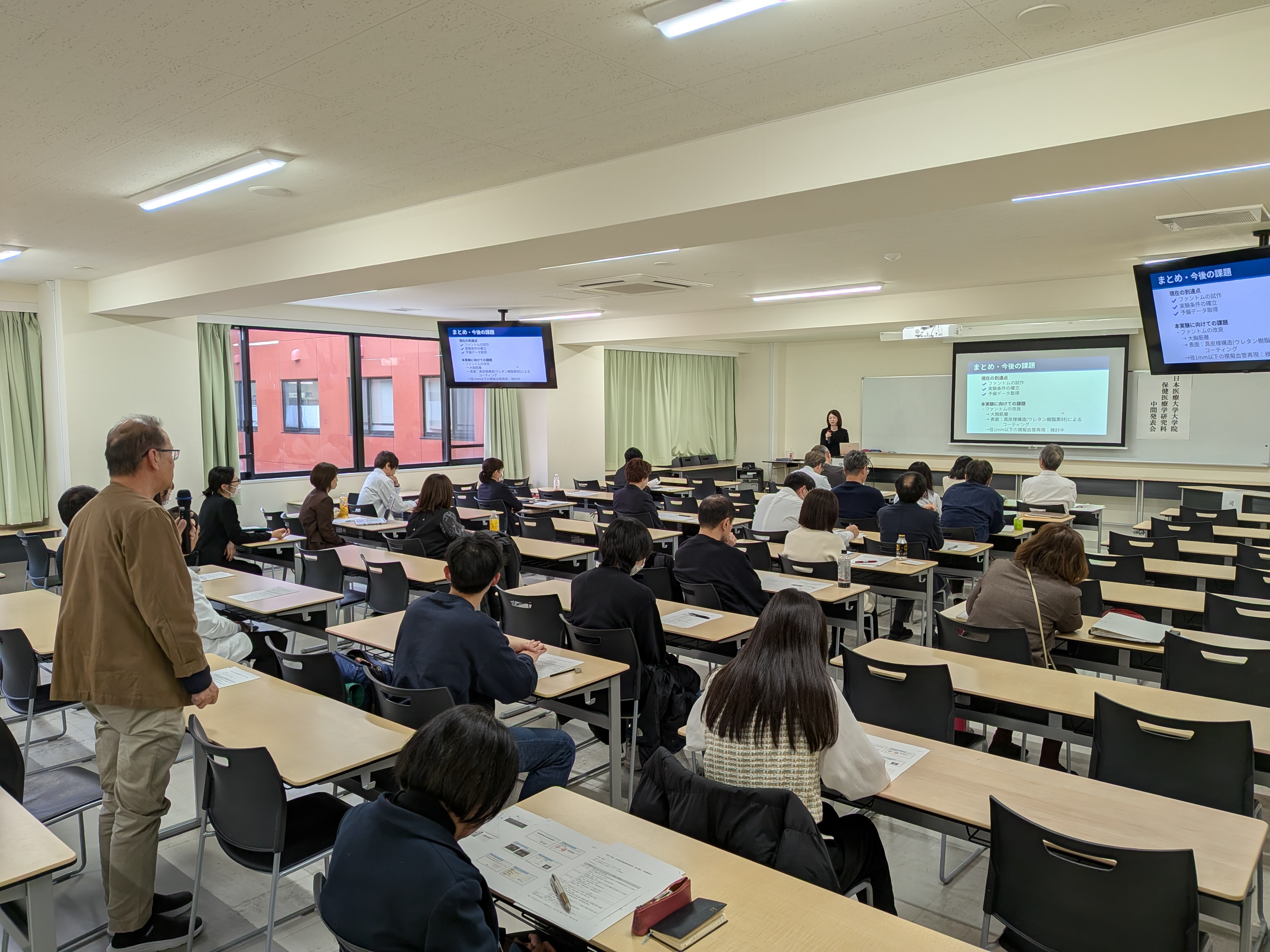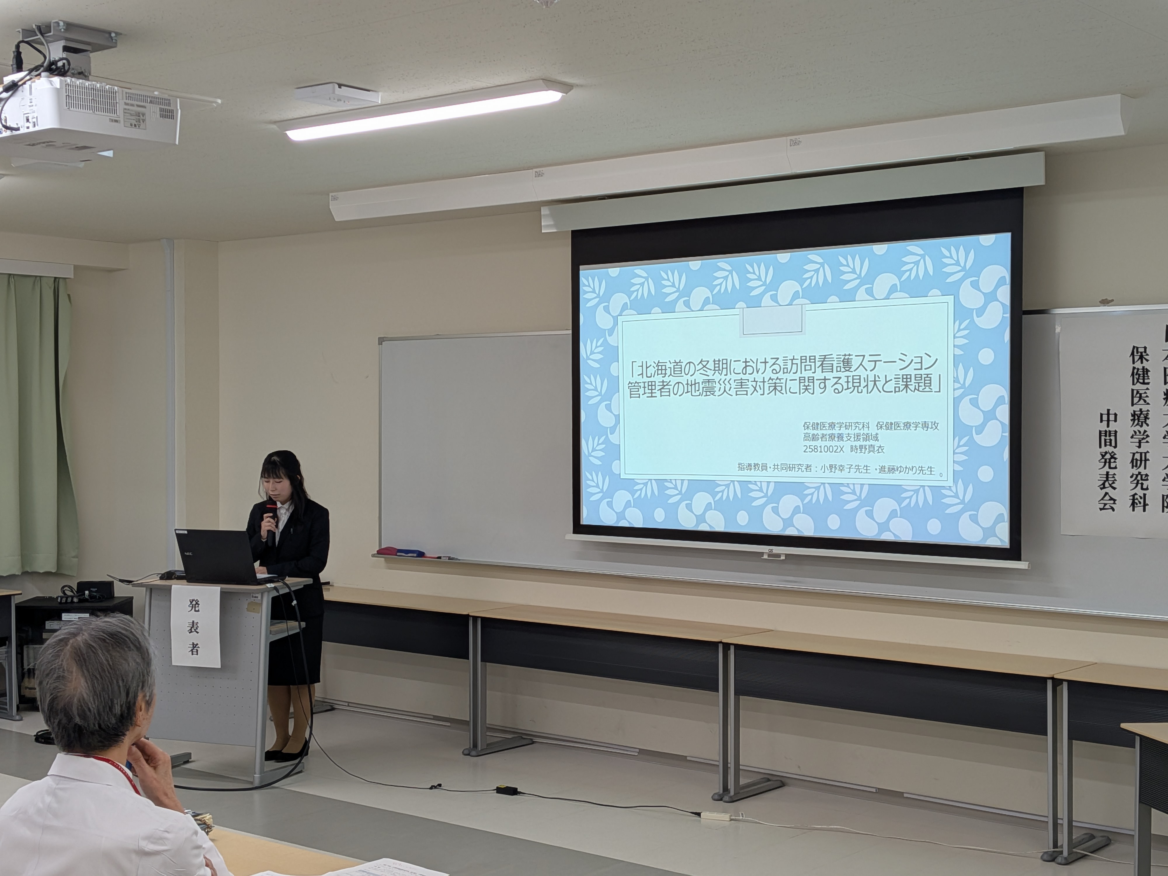 令和8年3月6日(金)、日本医療大学大学院保健医療学研究科において、修士論文の中間発表会を開催しました。本年度は6名の大学院生が登壇し、各自15分間の持ち時間で研究課題の背景、目的、研究方法、これまでに得られた結果および考察について報告を行いました。